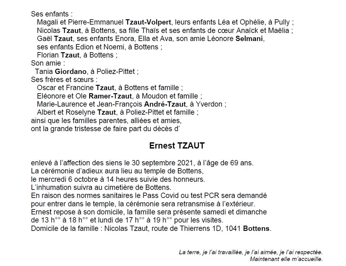 Ernest TZAUT 25 fév. 1952 - 30 sep. 2021 Avis mortuaire PFG Télecharger PDF Partager sur: Galerie PreviousNext PreviousNext