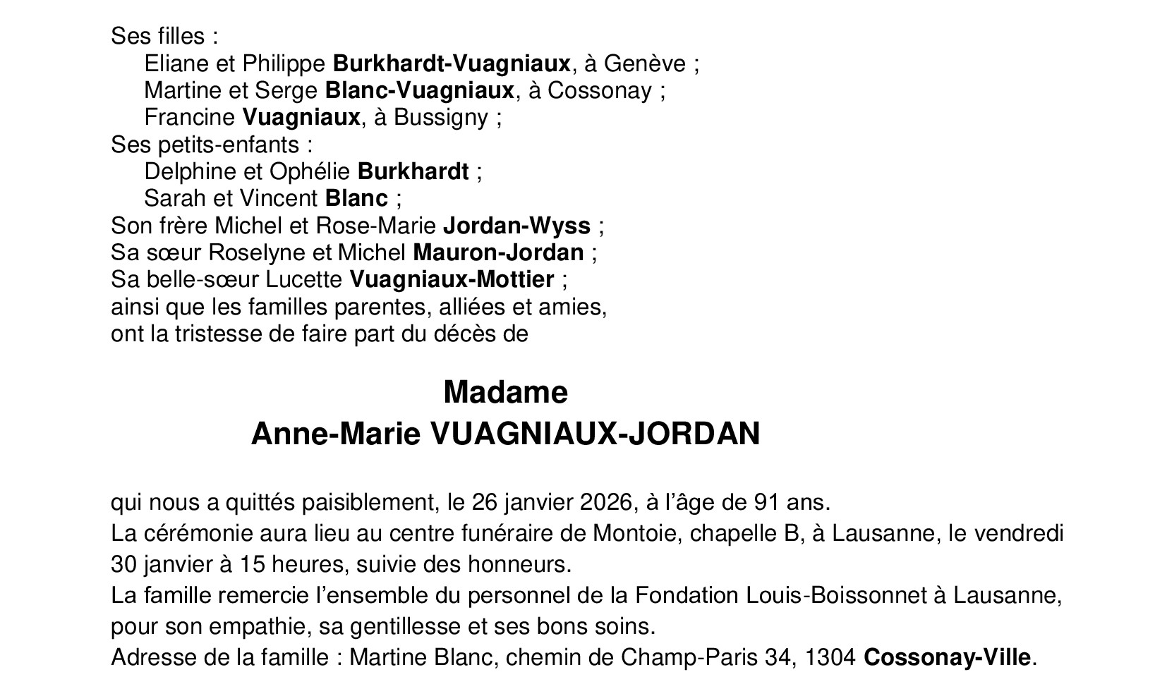 Madame Anne-Marie VUAGNIAUX-JORDAN