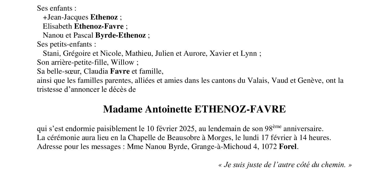 Madame Antoinette ETHENOZ-FAVRE
