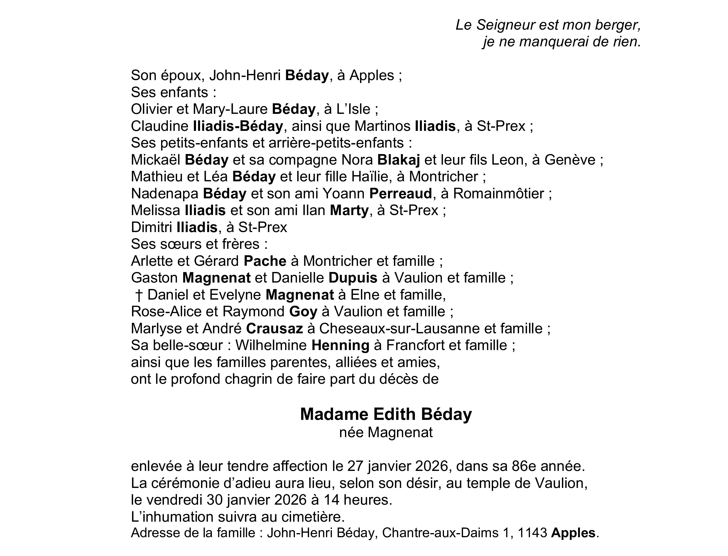 Madame Edith BÉDAY