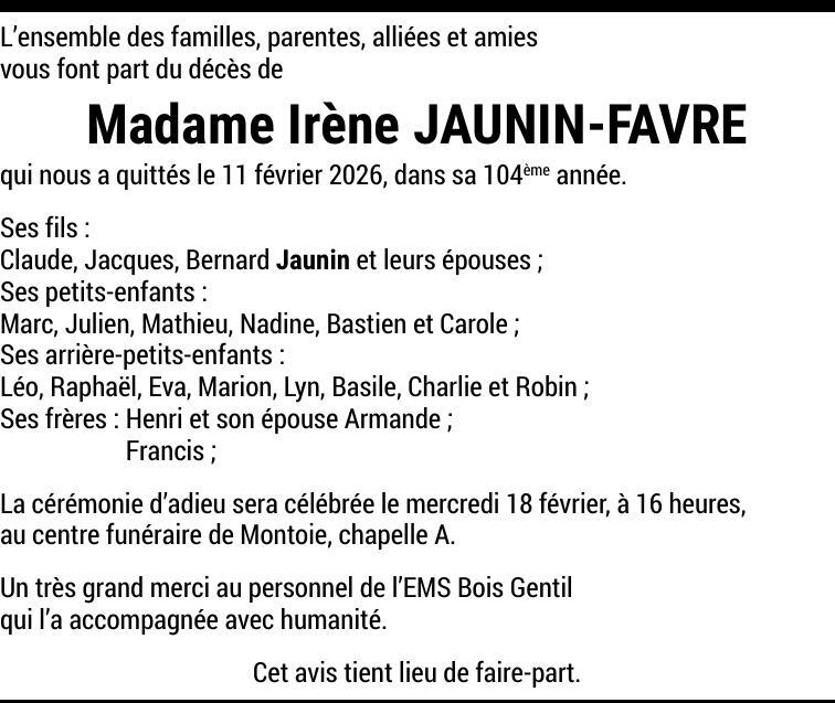 Madame Irène JAUNIN-FAVRE