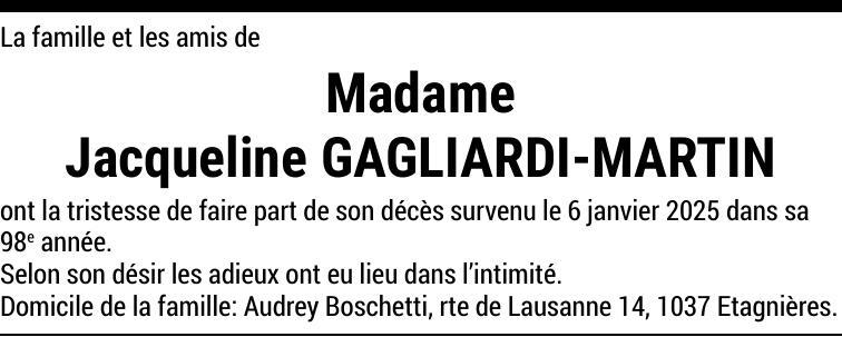 Madame Jacqueline GAGLIARDI-MARTIN