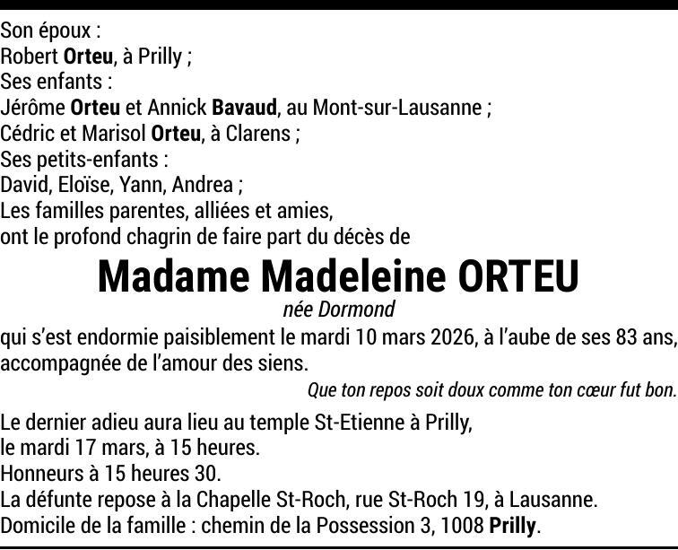 Madame Madeleine ORTEU