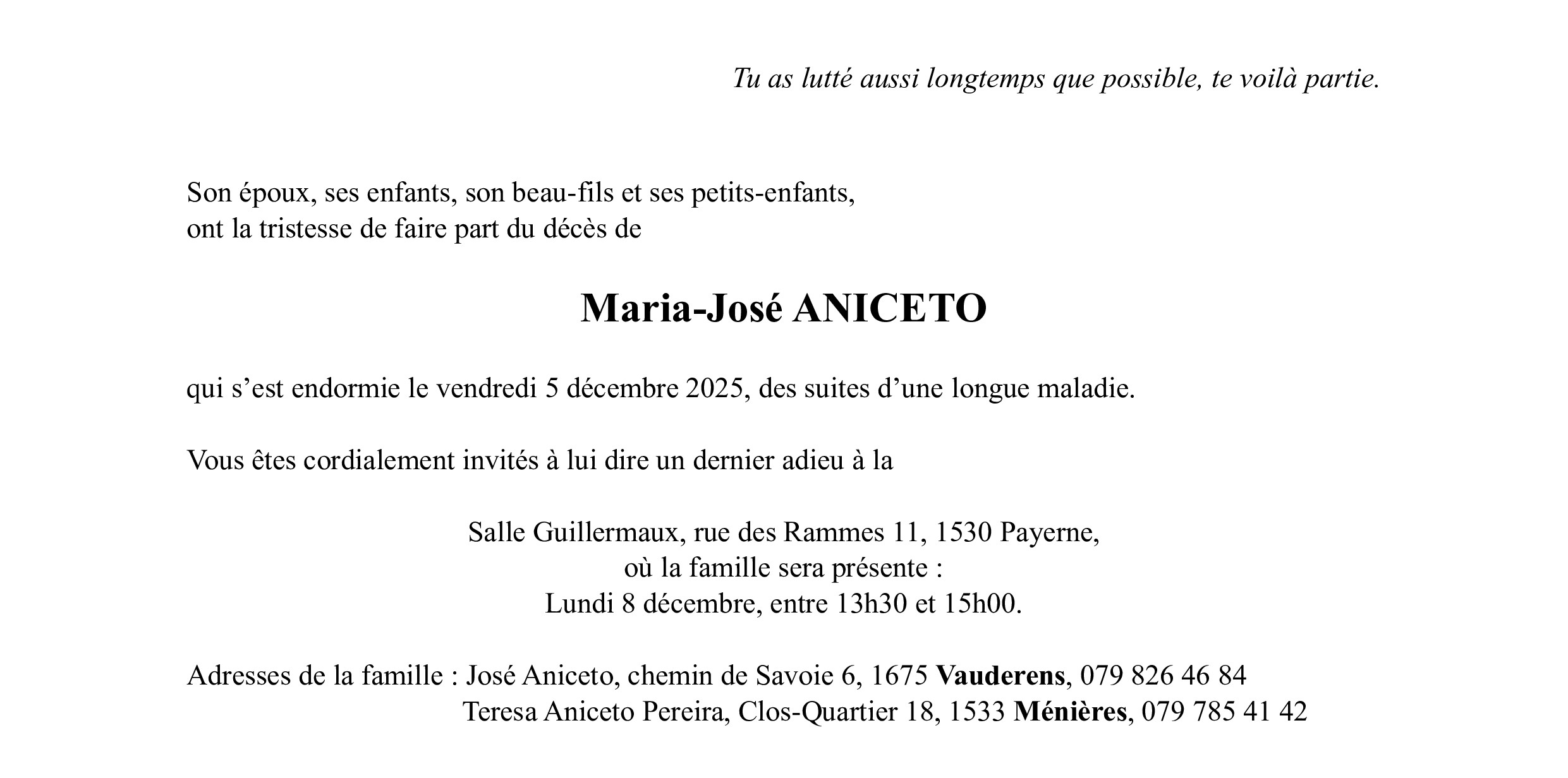 Madame Maria-José ANICETO