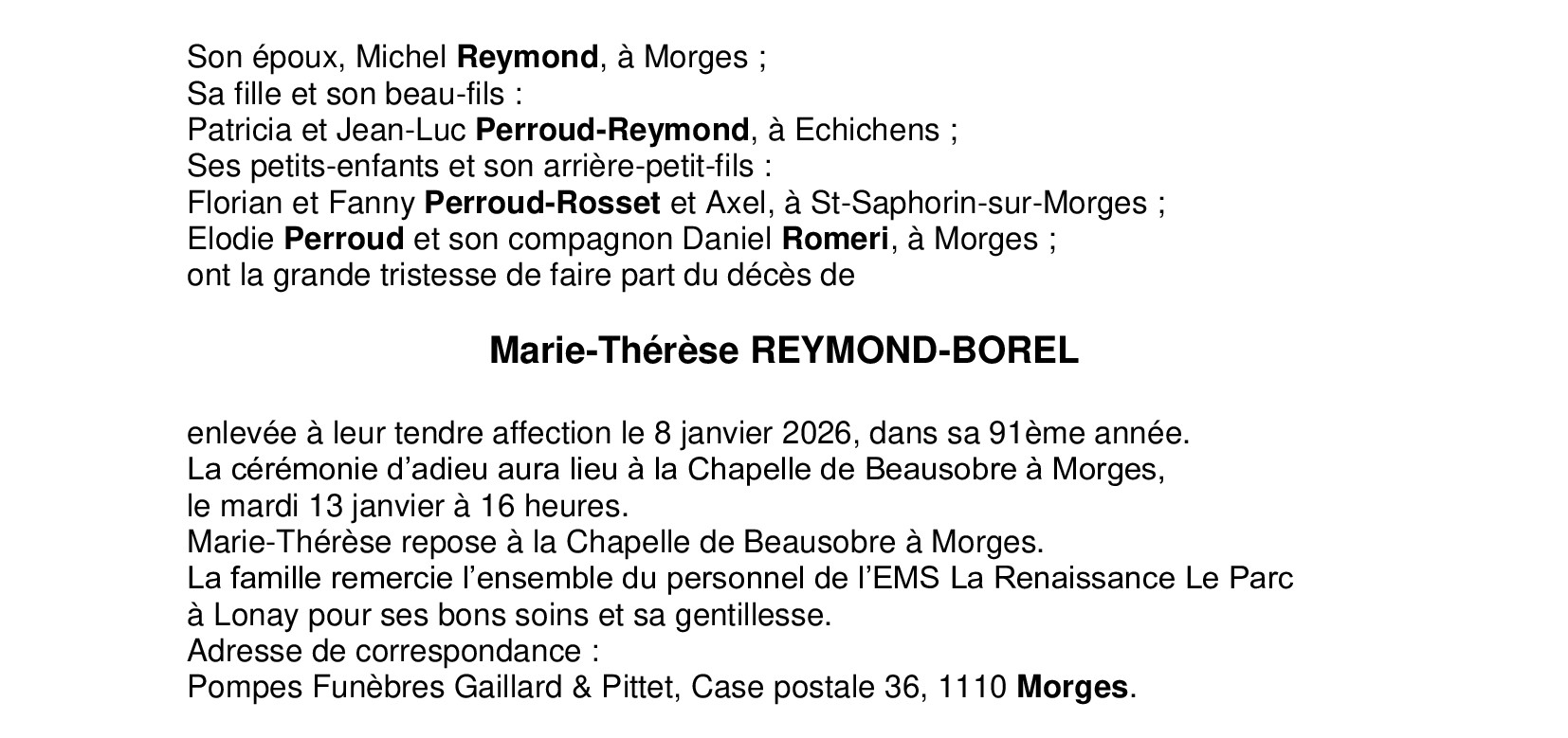 Madame Marie-Thérèse REYMOND-BOREL