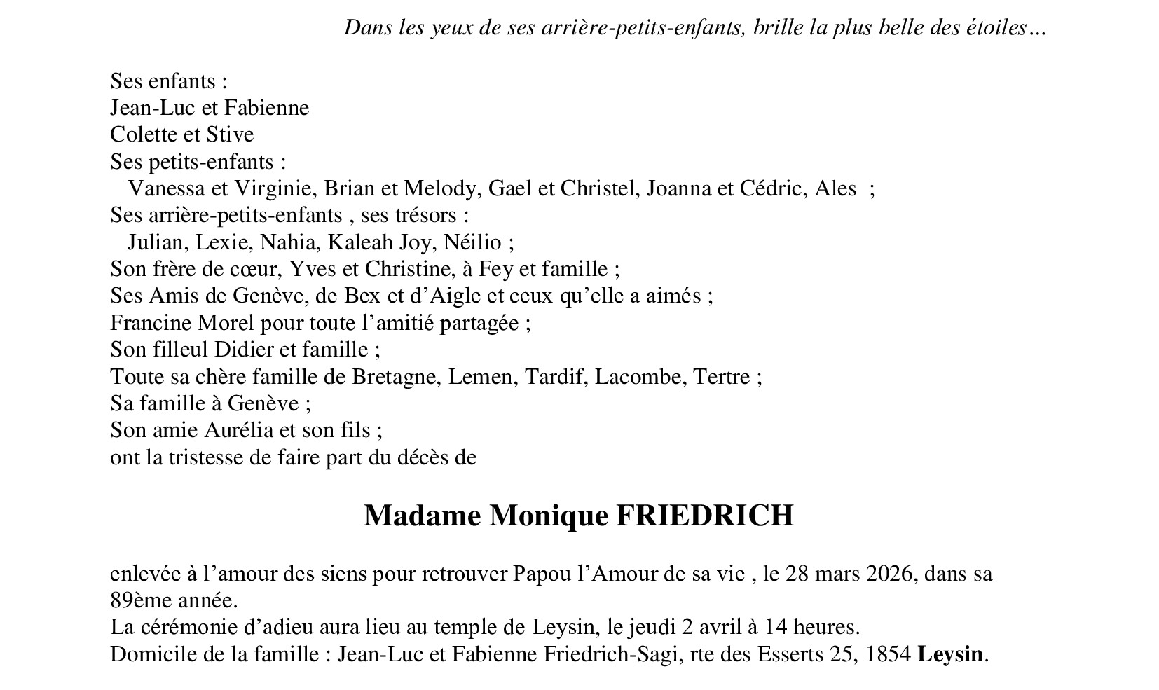 Avis mortuaire PFG