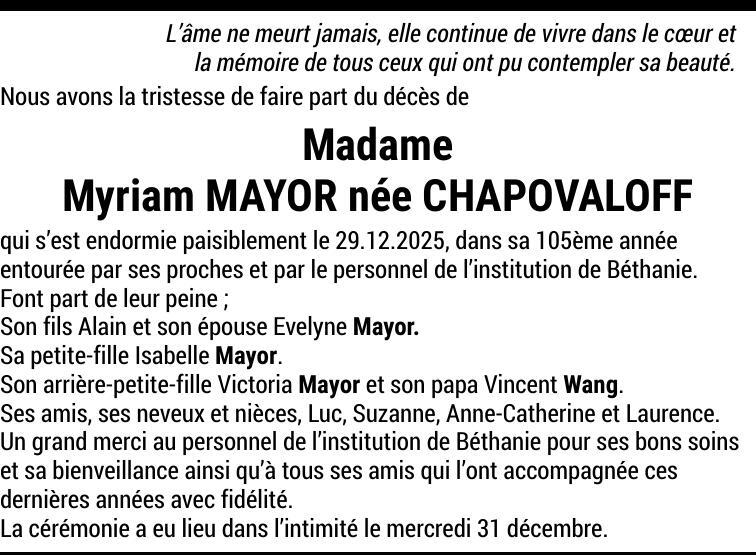 Madame Myriam MAYOR