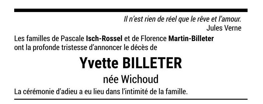 Madame Yvette BILLETER
