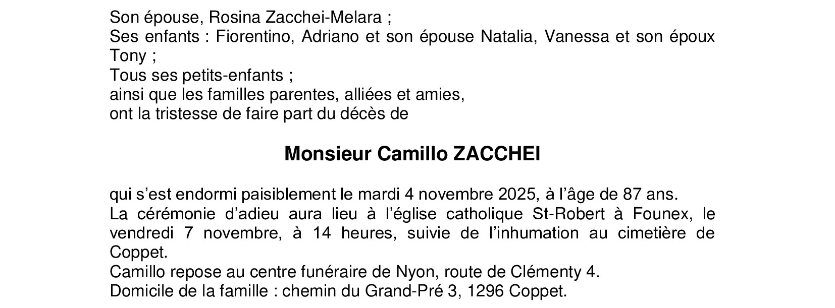 Monsieur Camillo ZACCHEI