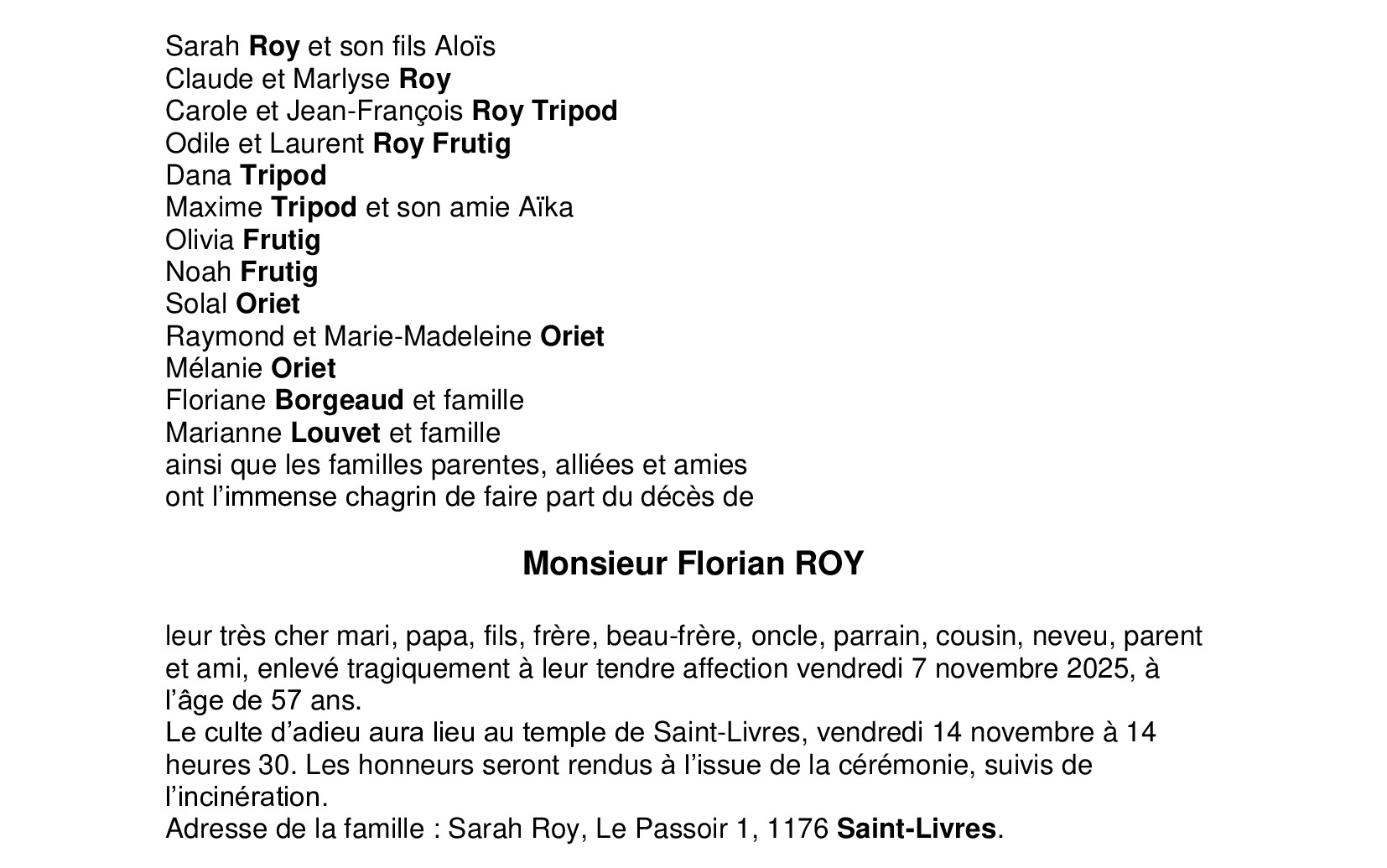 Avis mortuaire PFG