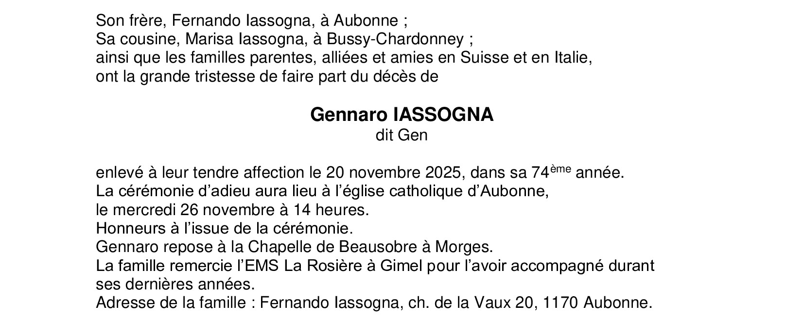 Monsieur Gennaro IASSOGNA